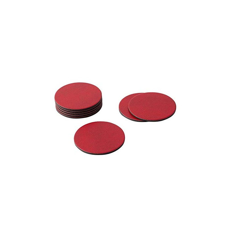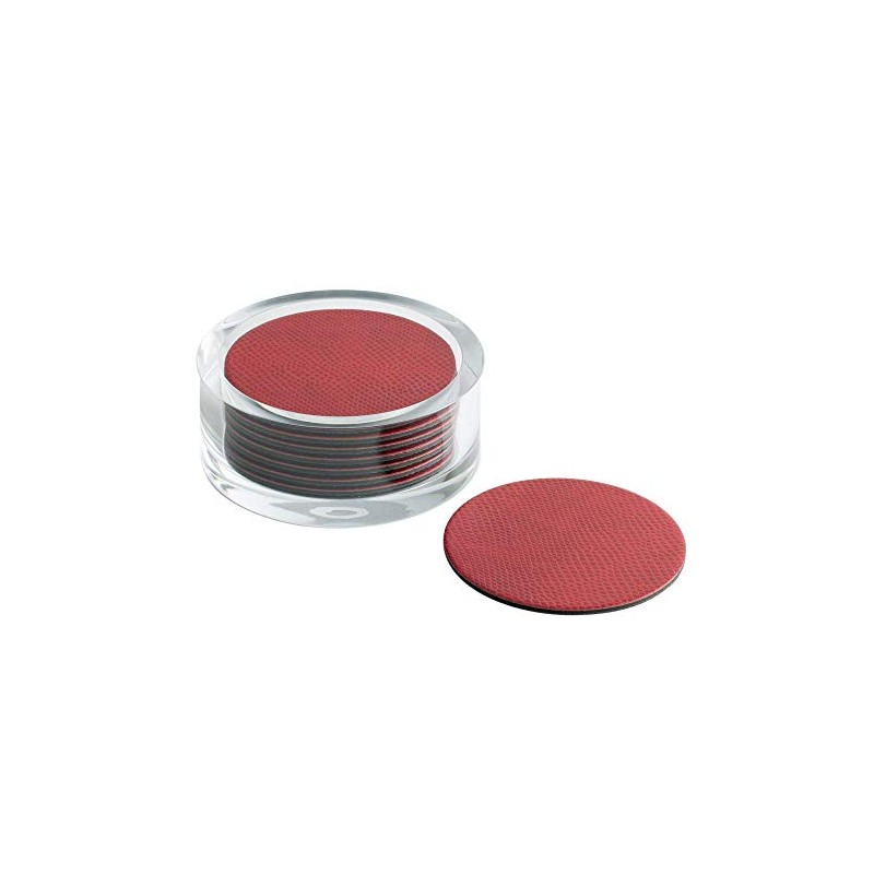 Caspari Round Snakeskin Felt-Backed Coasters & Holder Gift Set in Crimson