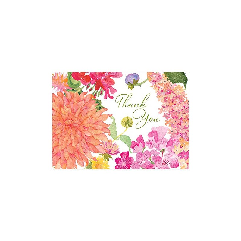 Caspari Summer Blooms Thank You Notes - 16 Note Cards & 16 Envelopes