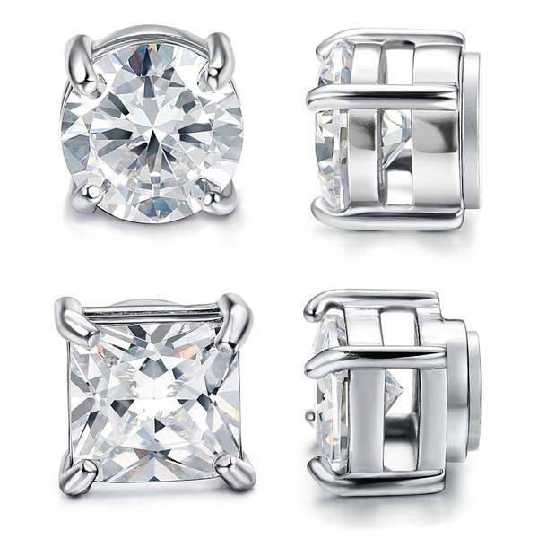 CASSIECA 2 Pairs Stainless Steel Magnetic Stud Earrings for Men Women Non Piercing CZ Hypoallergenic Non-Piercing Clip On Earrings Zirconia 5 mm / 6 mm / 7 mm, Stainless Steel