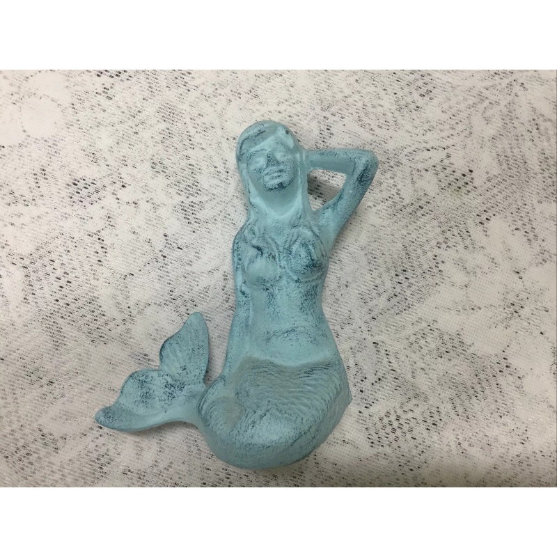 Cast Iron Sky Blue Sitting Mermaid