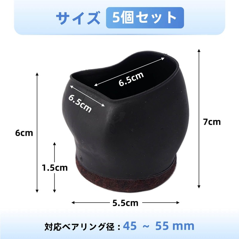 - [Product Specifications] Package includes 5 caster stoppers that can be used on furniture casters with a diameter of 1.6 - 2.4 inches (40 - 60 mm). Rubber caster stoppers have a 10mm thick high density felt material on the bottom. Shock absorbing, pressure resistant, quiet and prevents furniture from slipping