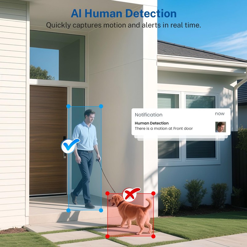 - AI Human Detection that Gets it Right: Only people trigger alerts—no more noise from pets or vehicles.