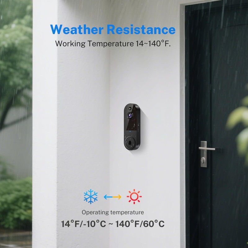 CastNeon Smart 1080P Wireless Video Doorbell with Chime, Two-Way Talk, Night Vision, Real-Time Alerts, 2.4G Wi-Fi, Cloud Storage Service, Battery Powered, Al Human Detection, Live View