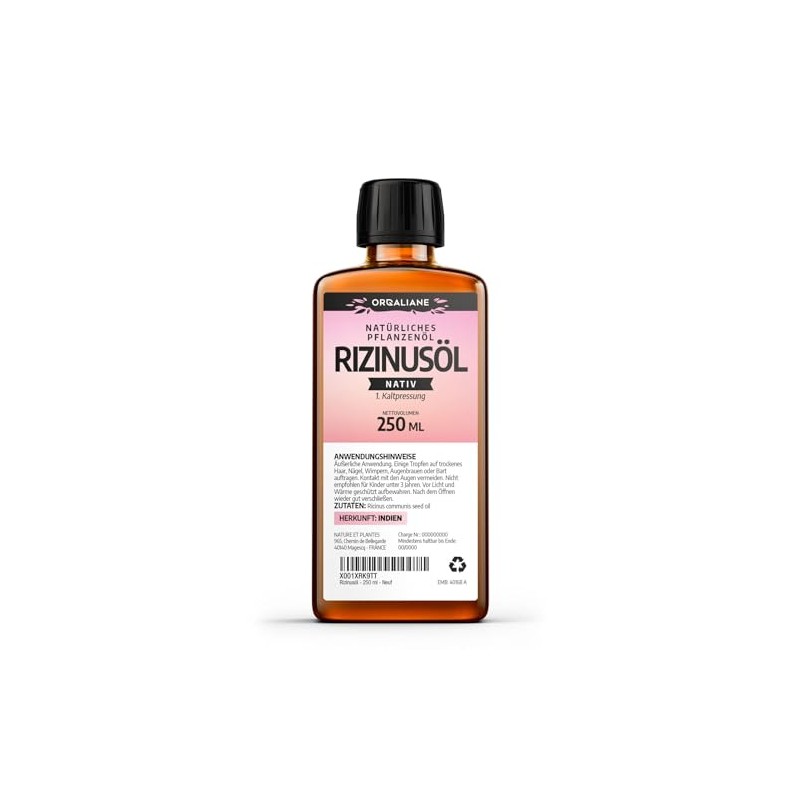Castor Oil - 250 ml - 100% Virgin - Cold Pressed - Ricinus Communis - Orgaliane