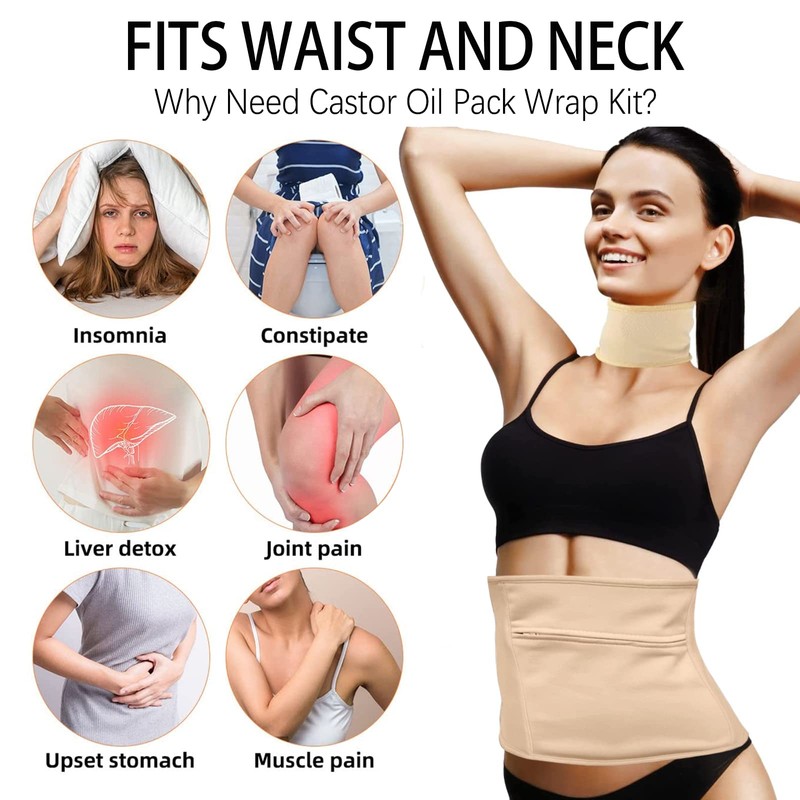 - 【Keep Body Health】The castor oil pack wrap can enhance the body's natural liver detoxification, blood circulation, lymphatic drainage and colon cleansing functions to effectively improve physical problems such as insomnia, digestion, absorption and defecation, widely used on your liver, kidneys, abdomen, muscles, and joints.