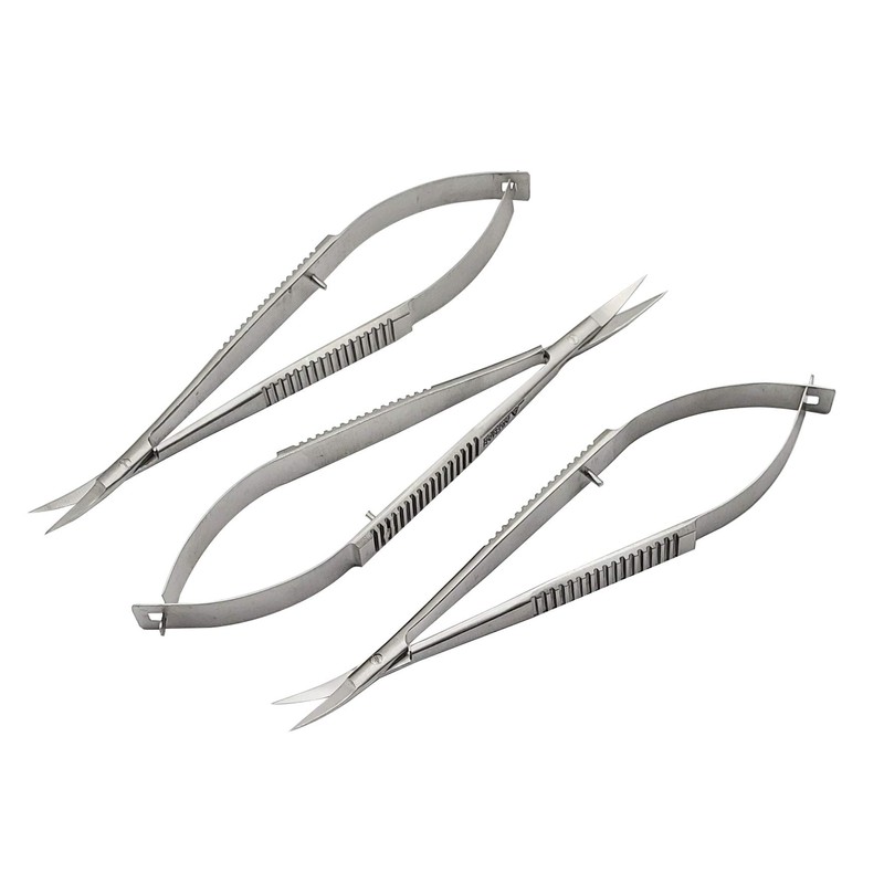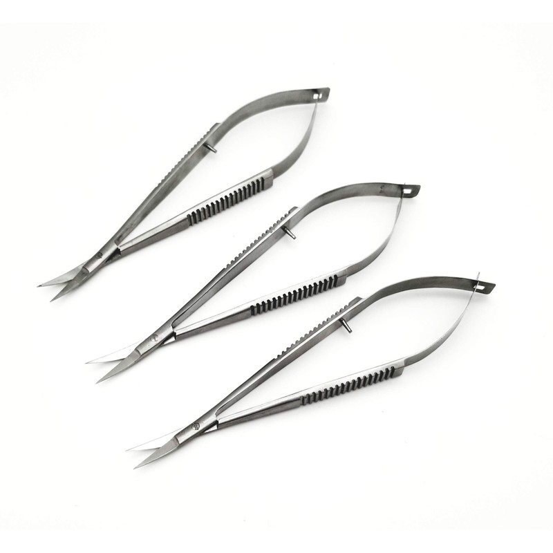 Castroviejo Scissors 5.5" inches CURVED set of 3 Micro thread cutting embroidery spring action extra sharp squeezable ARTMAN Brand