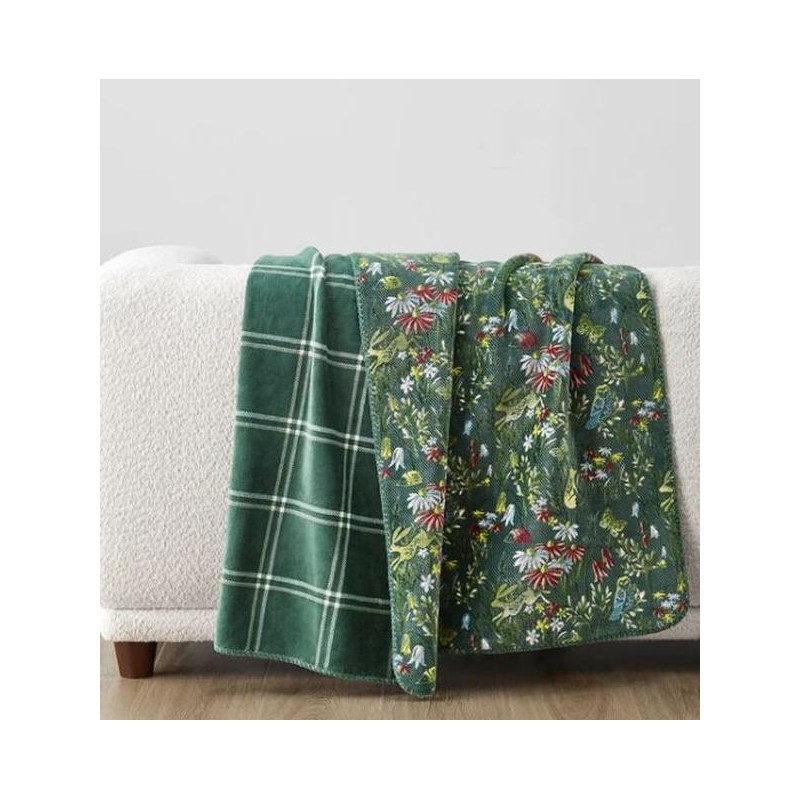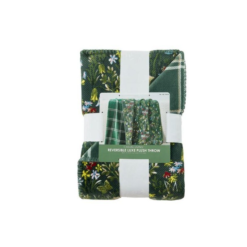 Casual Living Luxe Plush Throw Blanket - Reversible Floral Print & Whipstitch...