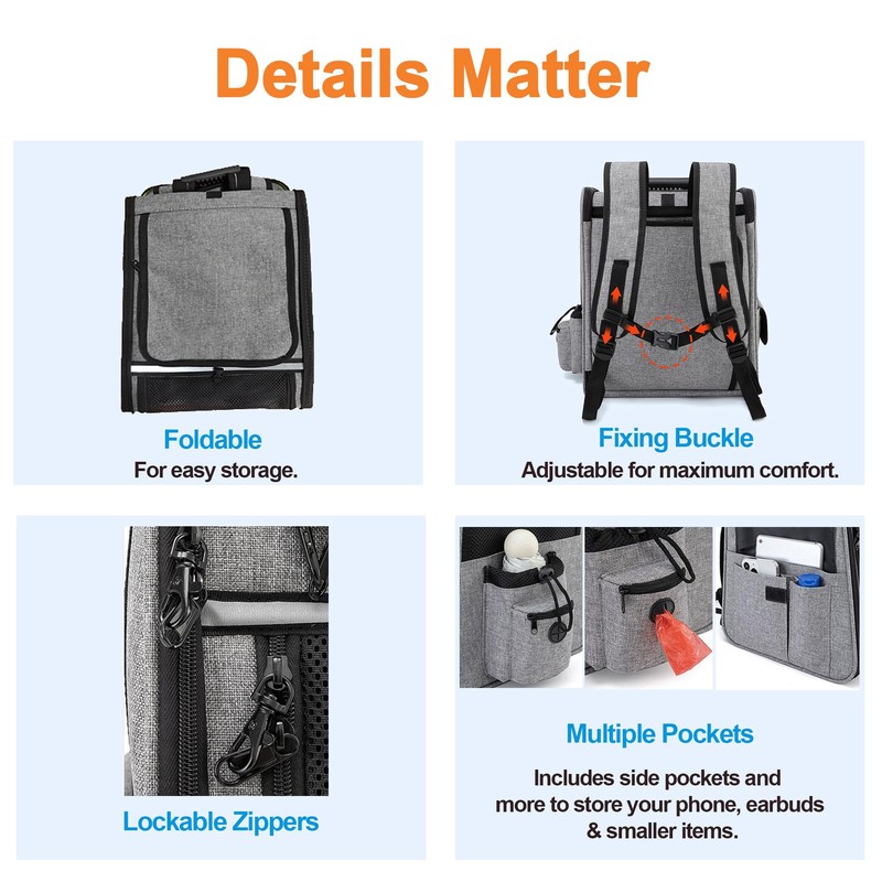 - 🐱🐶【Spacious & Easy Access】With a large top and front roll-up door design, this pet carrier allows easy entry and exit for pets without having to fully open the backpack. Unlike other designs, pets won't step on mesh fabric when exiting.