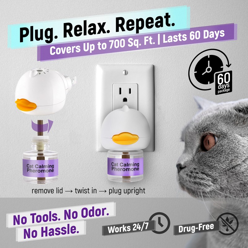 - Easy to Use for Quick Relief: This plug-in diffuser offers a simple, mess-free alternative to medication or essential oils. It works continuously to reduce unwanted behaviors like scratching, hiding, spraying, or restlessness triggered by stressors such as fireworks, visitors, or moving to a new home.