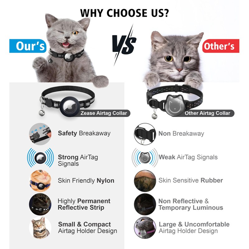 - Reflective Visibility for Safety: Zease cat airtag collar features a high-visibility reflective strip to enhance safety during nighttime walks or outdoor adventures.