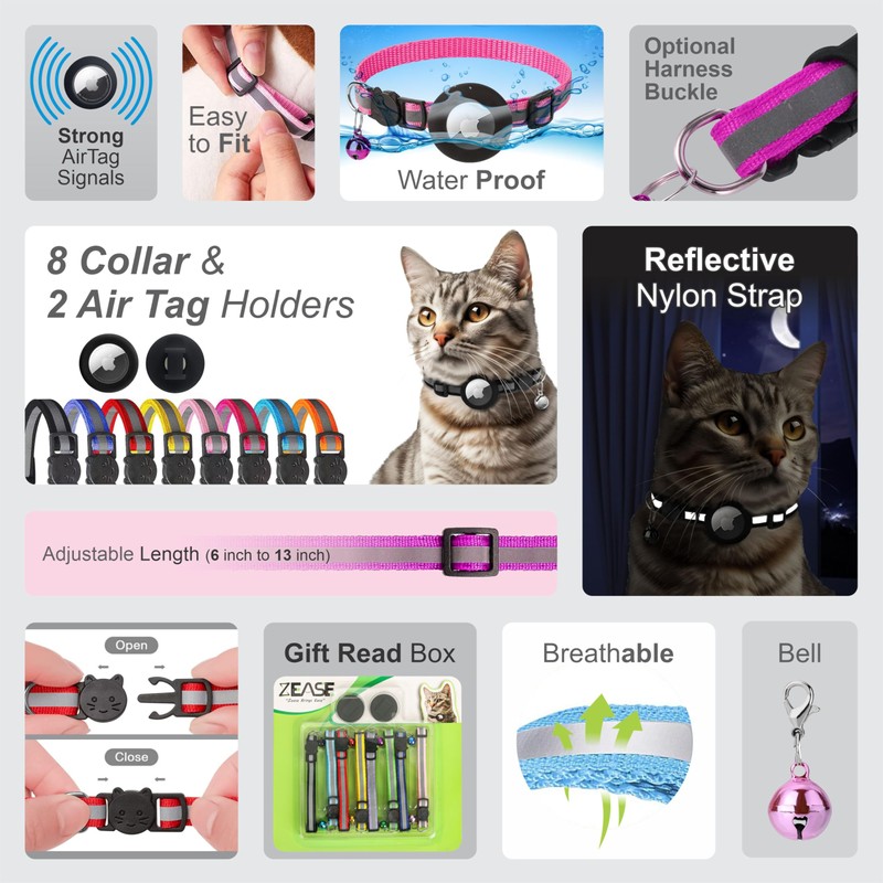 Cat Collars with Bells and airtag Holders (8 Collars + 2 Airtag Holders (Double Value Pack))