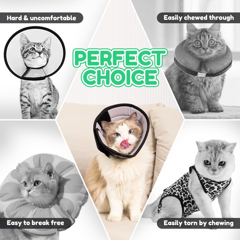 - Unparalleled Protection: This cat cone collar provides a safe and humane way to prevent your pet from biting and licking an recovering wound or injury. It makes the healing process more comfortable for your cat. It can be used not only as a short-term cat cone after surgery to help heal incisions and protect sutures, but also as a long-term barrier to stop excessive biting or licking from anxiety or habit.