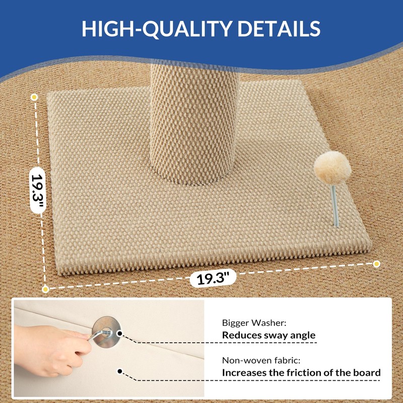- TALL CAT SCRATCHER POST: Over 41-inches tall, your cat will have plenty of room to stretch and scratch, and its sturdy, wide base ensures stability during play.