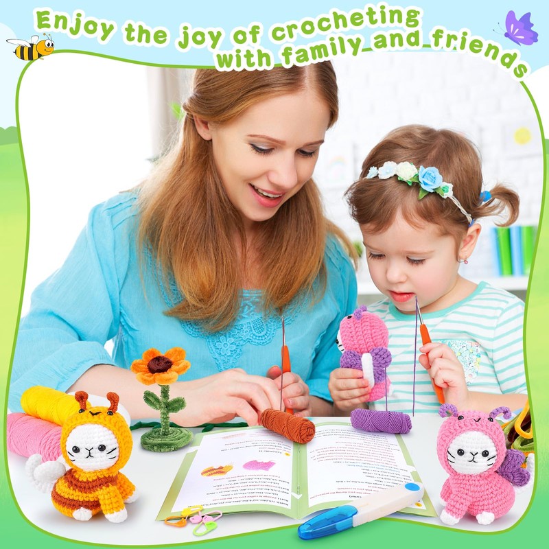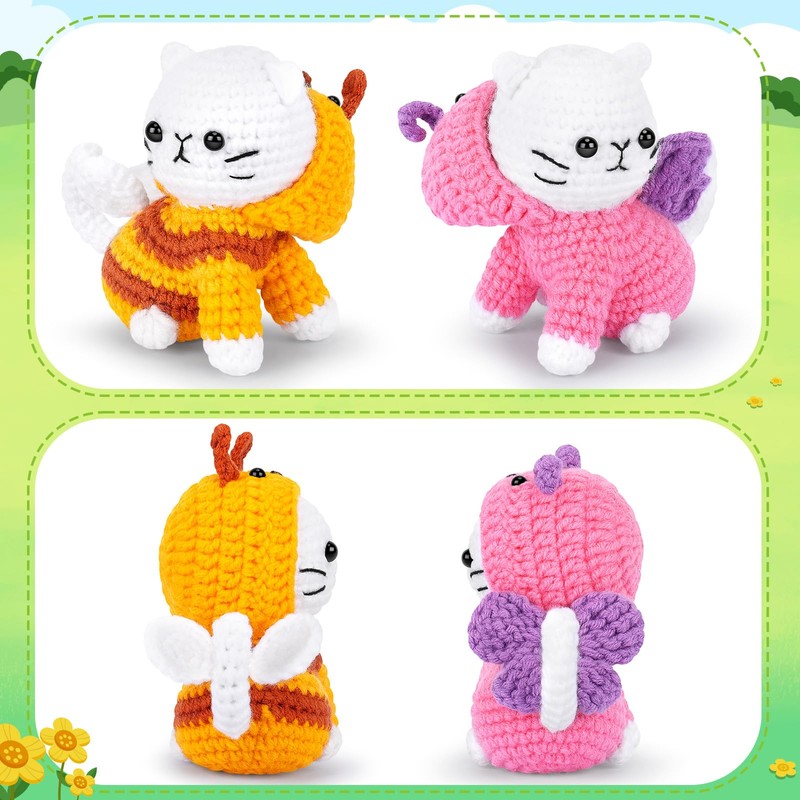- Wonderful Handcraft Present: This complete crochet kit cat 2pcs cat cosplay yellow bee and pink butterfly crochet set can be as a soft object to your friends, family, kids, lover and beginner crochet etc, absolutely is a new idea of animal crochet kit. And you can finish knitting and decor home or bedroom or office. Baby cats crochet kit is a great present for birthdays, Christmas, New Year, Valentine's Day or any other holiday / festival / party.