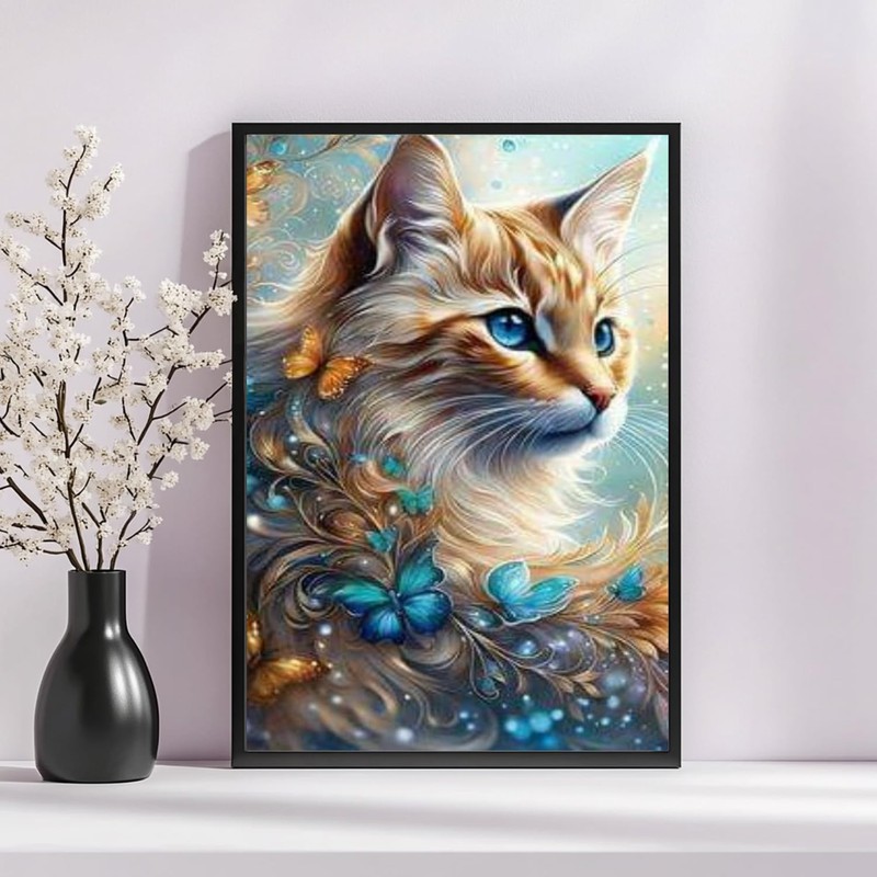 - 5D diamond painting set: cat diamond painting measures 30 x 40 cm. Tools included in the set: waterproof canvas x 1, diamond bag x 1, diamond pen x 1, replacement pen tip x 2, adhesive block x 1, tray x 1, sealed bag x 30. (without frame)