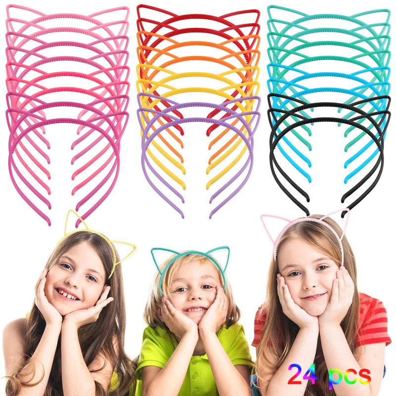 - 🎀【24 PIEZAS CAT EAR HEADBANDS】Incluye 24 piezas de lindas hair hoops en 12 colores diferentes, cantidad y colores suficientes para combinar con diferentes atuendos y ocasiones, satisfaciendo todas tus necesidades.