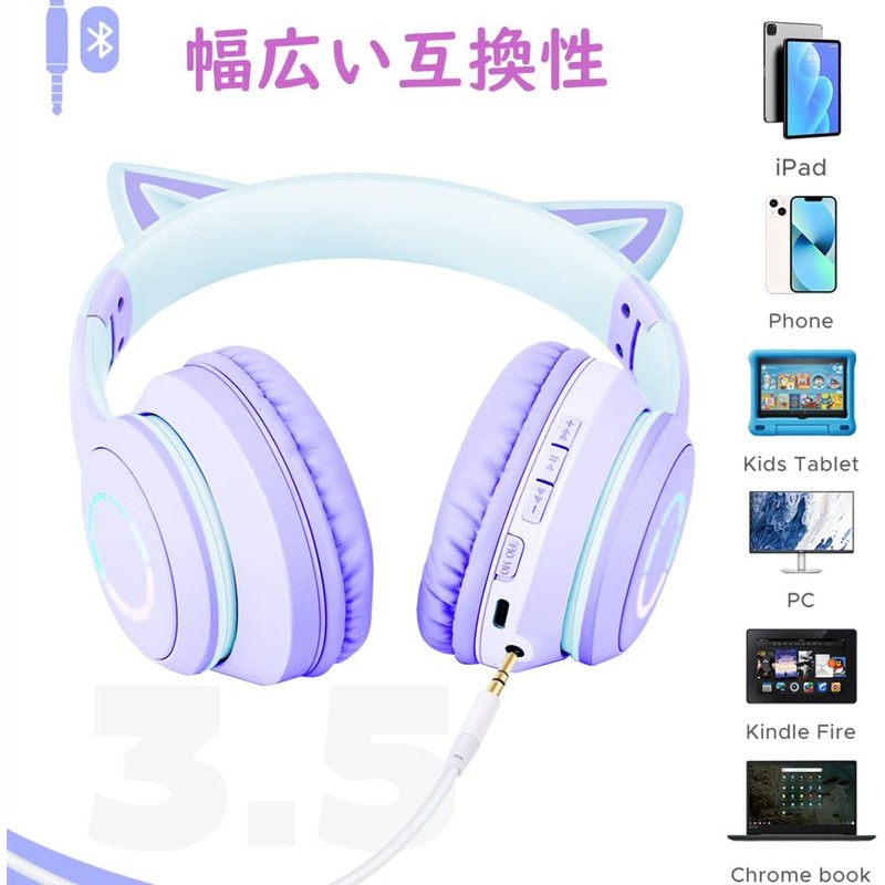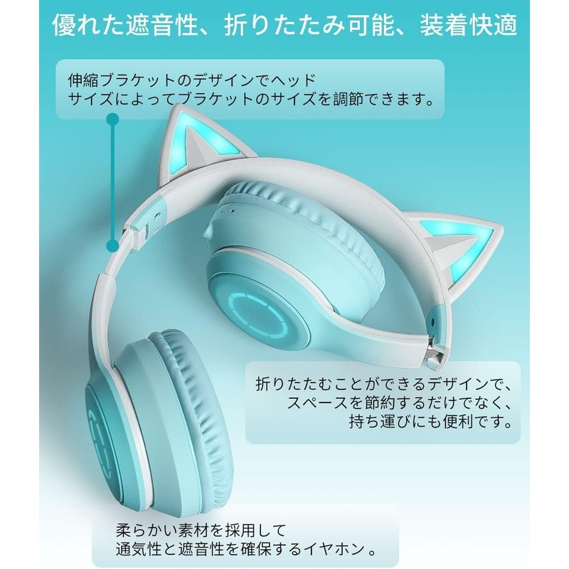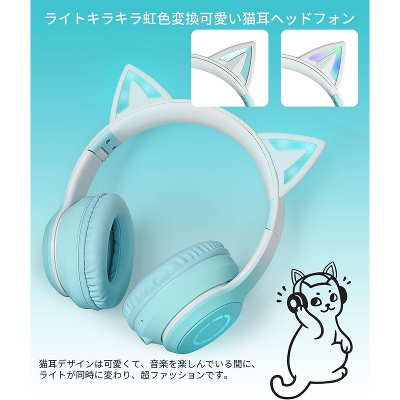 Cat Ear Headphones, Sparkling Rainbow Color Conversion, Cute, Wireless Headphones, Wired, Wireless, Dual Use, Bluetooth Gaming Headset, Bluetooth 5.1, Bluetooth Headset, Includes