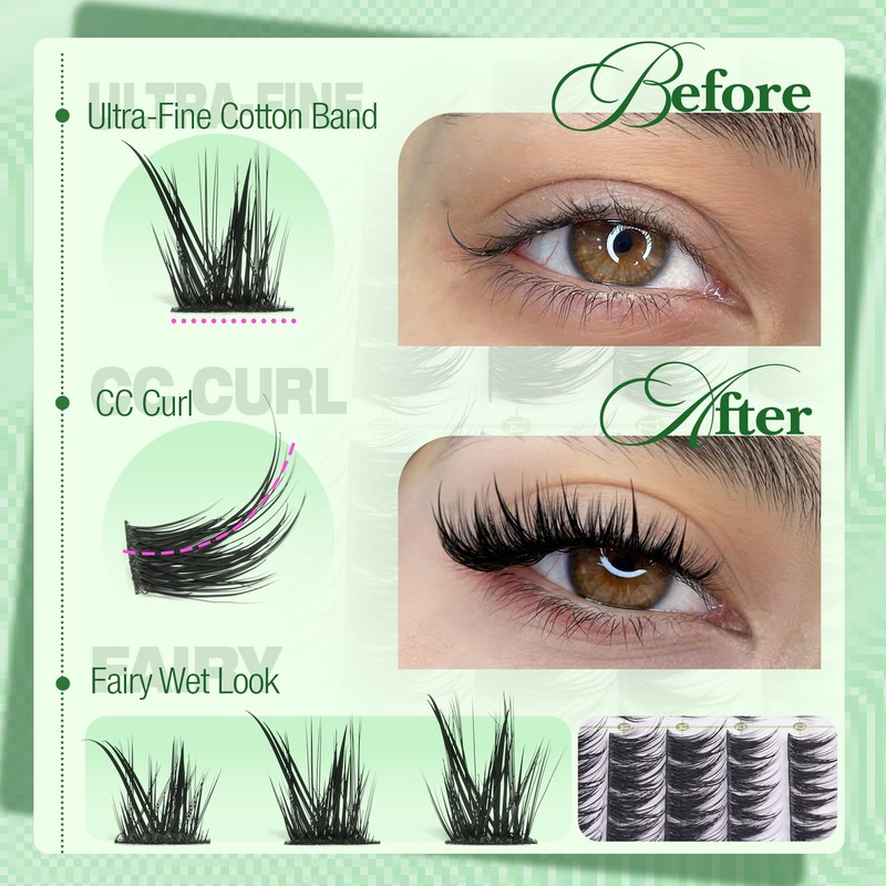 - Ultra-Comfortable, Skin-Like Thin & Flexible Band for All-Day Wear: Experience unparalleled comfort thanks to our revolutionary ultra-thin flexible cotton band. Crafted to be invisible and mimic the feel of your natural lash line, this super soft and lightweight band contours perfectly to any eye shape. Forget heavy, irritating strips; our comfortable fairy individual lashes feel so natural, you'll forget you're wearing them, ensuring all-day comfort without sacrificing style.