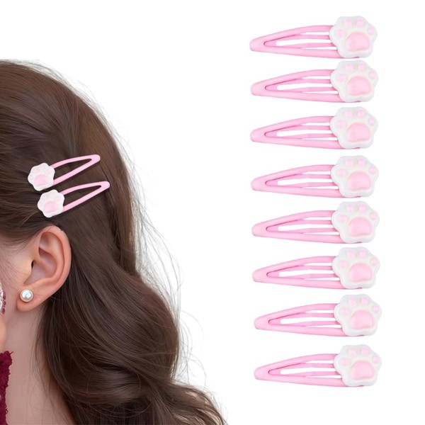 Cat Hair Accessories for Girls Women Paw Print Barrette Small Hairclips for Thin Thick Fine Hair Mini Decorative Barrettes Clips Party Barrettes Girls Lady Festival Hairclip Pink Barrette Set of 8