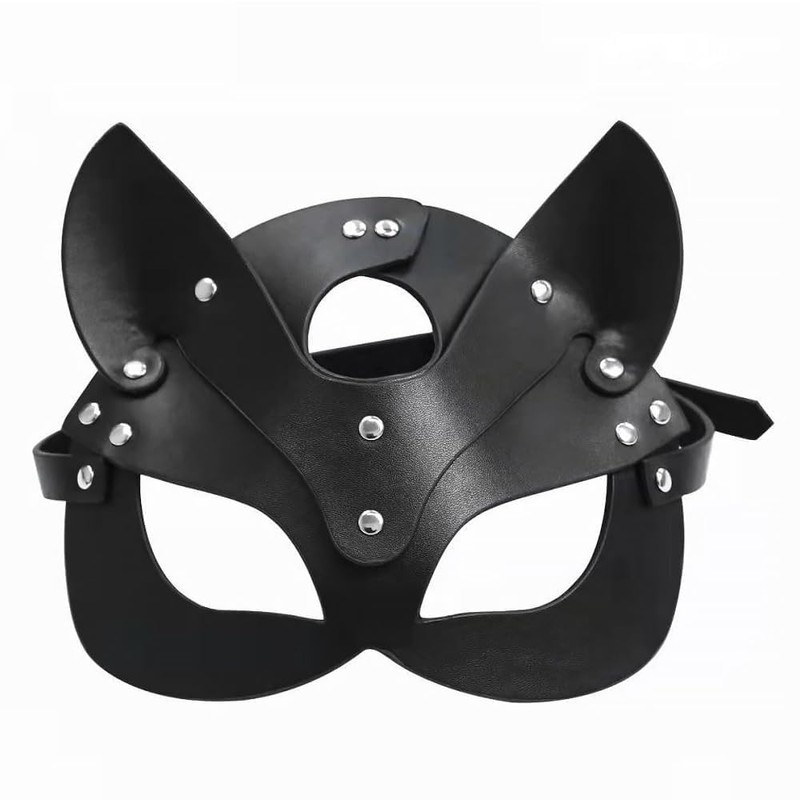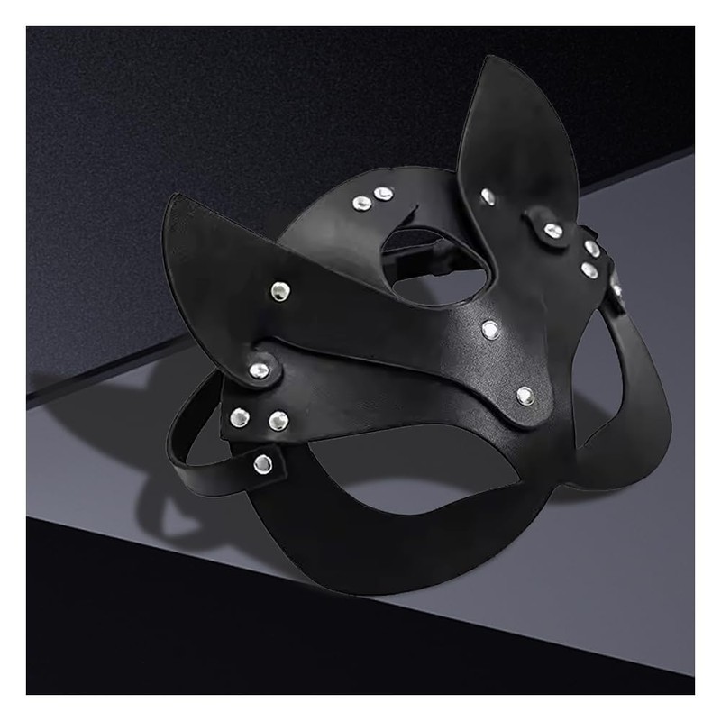 Cat Half Face Mask Made of Leather for Women, Masquerade Party Fox Mask for Punk Rock Festivals, Dance Parties (Fox)