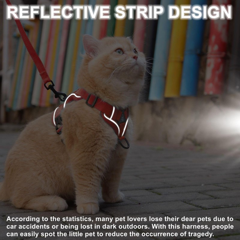 Cat Harness and Leash Set, Cat Harness and Leash Set, Escape Proof Adjustable Vest with Leash for Kittens and Puppies, Soft Mesh Jacket with Reflective Strips (M, Red)