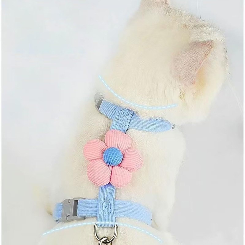 Cat Harness, Cat Leash Set, Flower Shape, Cat Harness, Lightweight, Ultra Small Dogs, Small Dogs, Cats, Easy to Remove, Adjustable Size, Breathable Mesh, Escape Prevention Walks (Blue Flowers, M)
