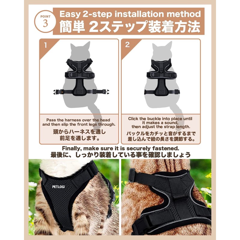 - ✅【Durability and Nighttime Safety】: The Petlogi vest-style harness is made from durable, tear-resistant nylon material, ensuring long-lasting use. Reflective materials are incorporated into the edges on the back, enhancing visibility by reflecting lights from cars and bicycles during nighttime walks, keeping your pet safe. When used together with the included cat leash, it allows for more effective control and helps prevent your pet from getting lost. This harness is perfect for everyday walks, outings, and even emergency evacuations.