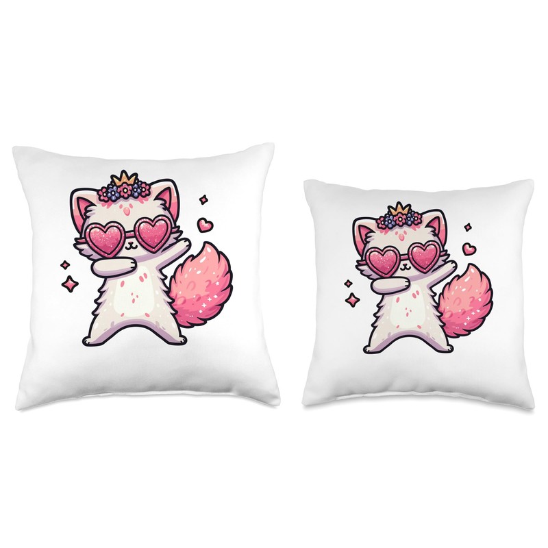 Cat Heart Shape Sunglasses Dabbing Dance Lover Throw Pillow