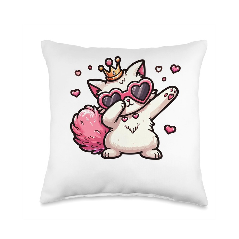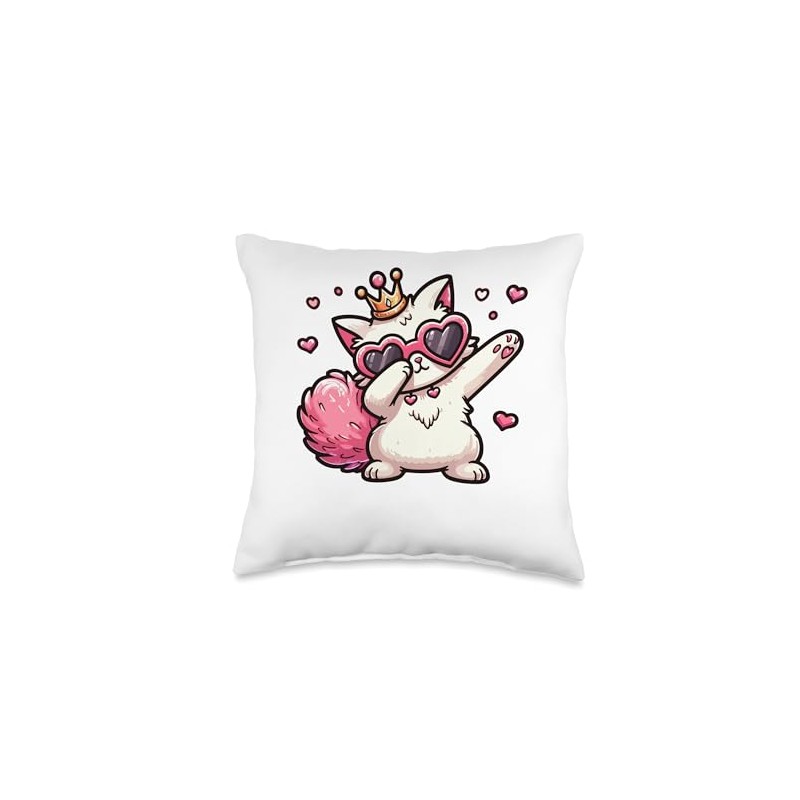 Cat Heart Shape Sunglasses Dabbing Dance Lover Throw Pillow
