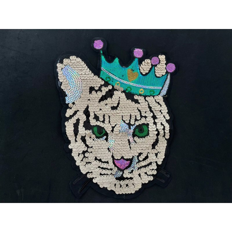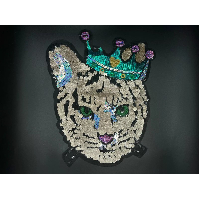 CAT Huge Crown RRoyal Cat Sequin Sew-on Patch High Quality Sequin Big Cat Patch