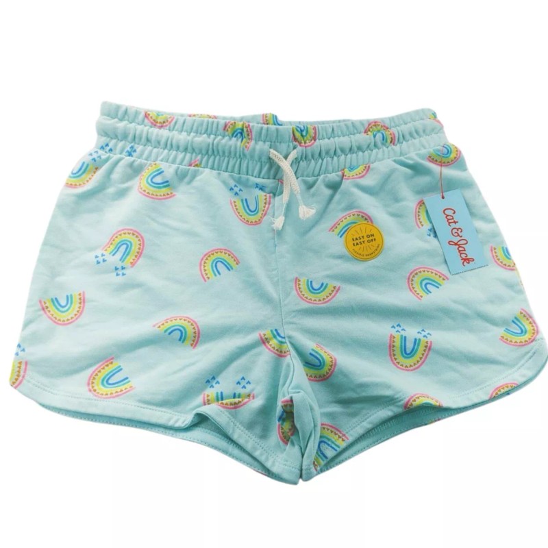 Cat & Jack Girl's Size XXL (18) Rainbow Shorts Mint Green Pull On Drawstring