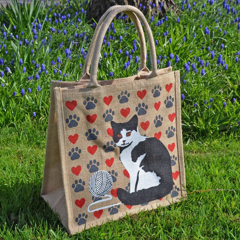 Cat Jute Bag Medium Sized Jute Bag Set of 2