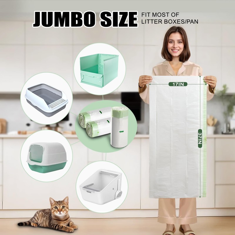- 【Born for cat lovers】It makes litter box clean up a breeze; empty the cat litter box without the mess and dust, just tie up and throw away about per week, easy and hygienic.