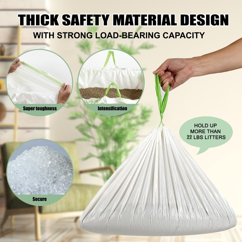 - 【Drawstring Closure】Each litter bag comes with a sturdy drawstring, so all you have to do is gently lift it up and it will do a good job of sealing it for you, isolating odors and making it easy for you to get your cleaning done.