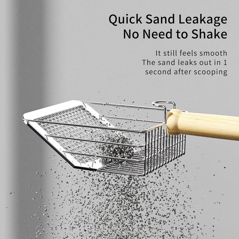 - High-quality material: This metal cat litter scoop is made of stainless steel material, which has a longer service life and is not easy to damage. The handle is designed with high-quality wooden handle, which is ergonomic, comfortable and beautiful
