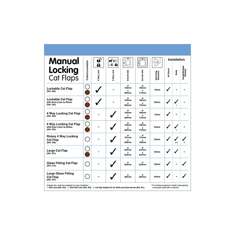 Cat Mate 4 Way Locking Glass Fitting Cat Flap (Medium)