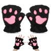 Cat Paw Fingerless Gloves, Furry Paws Gloves Faux Fur Plush Furry Cat Claw Glove Cute Cosplay Costume Accessories for Women(Black)