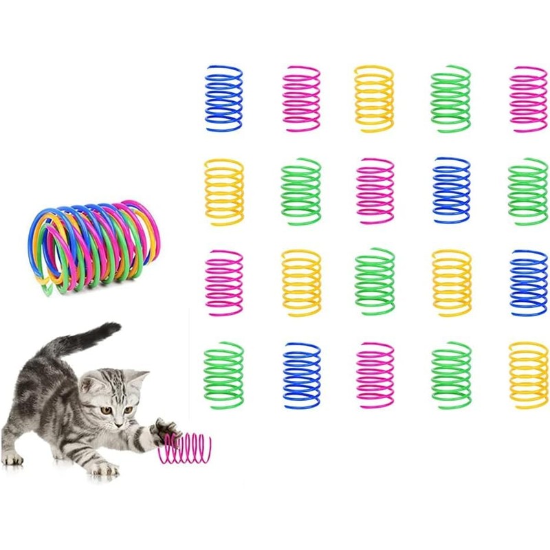 - 【4 Bright Colors】Cats like bright colors. Our cat plastic springs are composed of 4 classic colors of yellow, green, pink( some are red) and blue, which attracts the cat's attention!