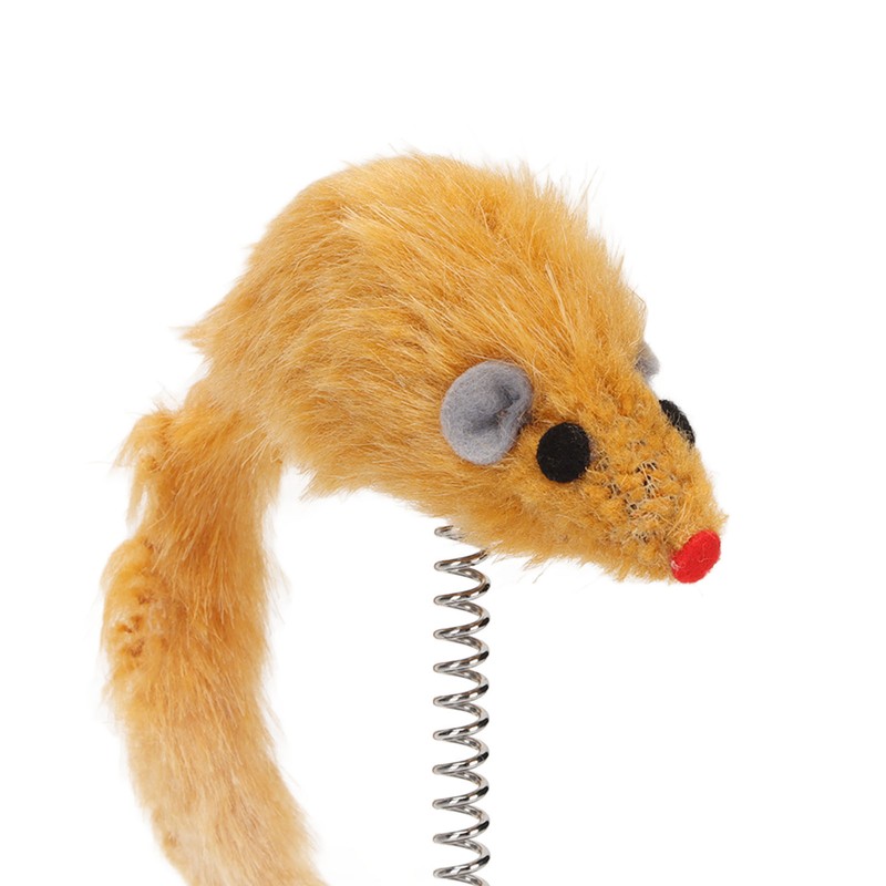 Cat Spring Mouse Toy Scratch Resistant Boredom Relief Interactive Kitten Toy with Plush Base for Indoor