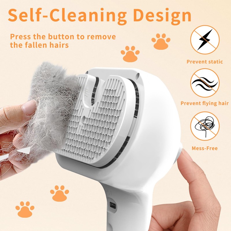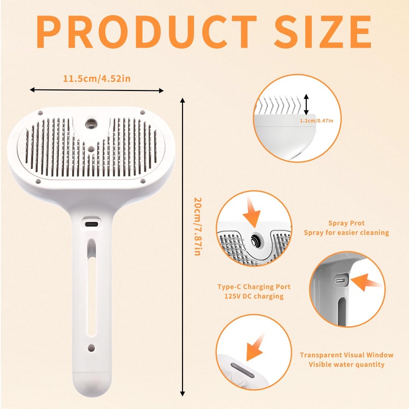- One-click Cleaning Button: After finishing combing, gently press the hair removal button to easily clean the hair on the cat comb. Note: Only water turned into spray, not heated. If the spray doesn't work, just shake it