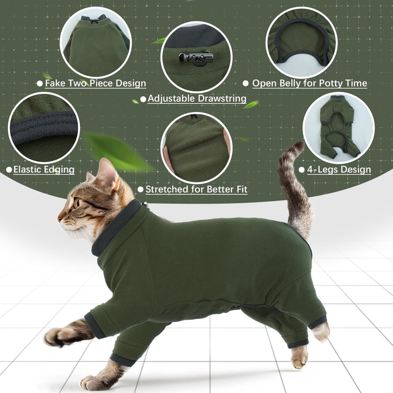 - 🐾【Comfortable】Our cat onesie are made of material that can stick hair which is lightweight, elastic, soft and comfortable. The Cat coat can easily stick the hair that falls off your cat during the shedding season, effectively helping you reduce the time for cleaning cat hair.