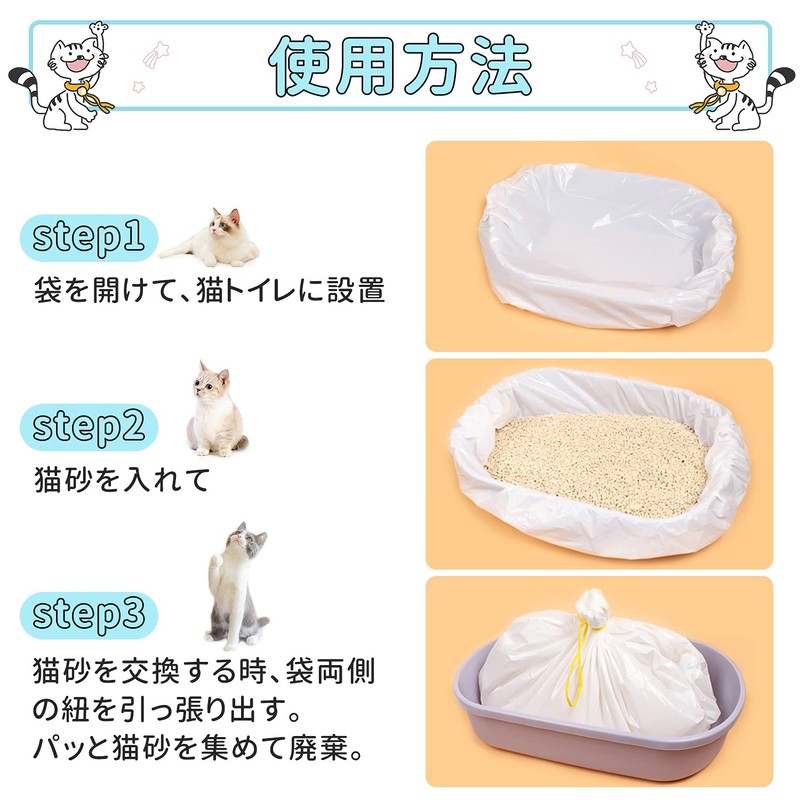 - (Easy to replace cat sand without dirtying your hands) By using a cat sandbag you can simply pull the strings on both sides and tie them up to lift the cat sand at once and throw them away. No more grit out ever again. Easily replace cat sand without messing your hands