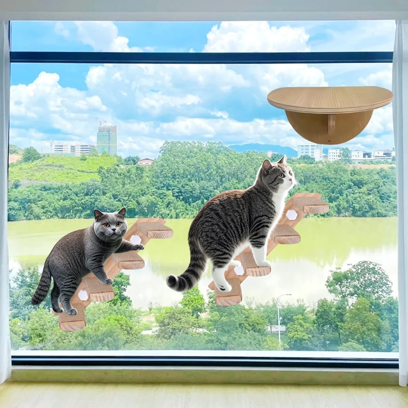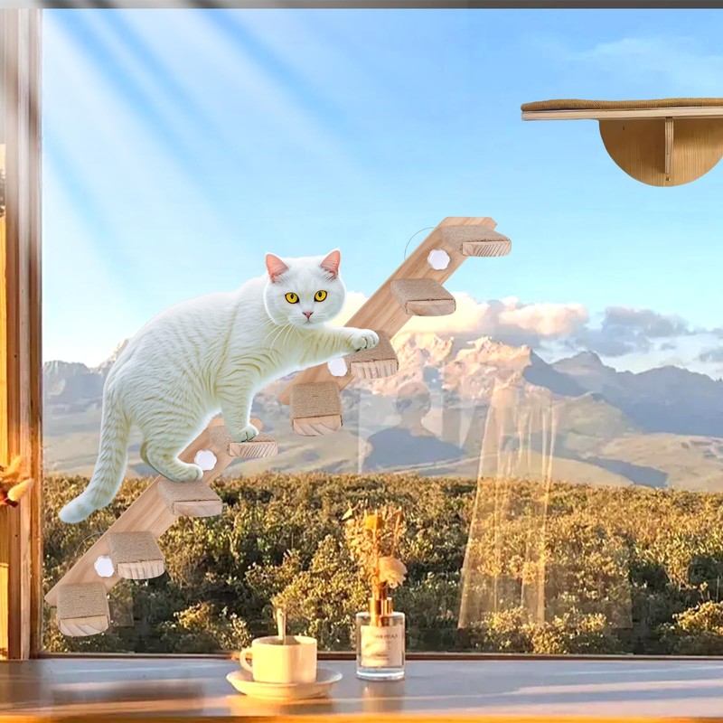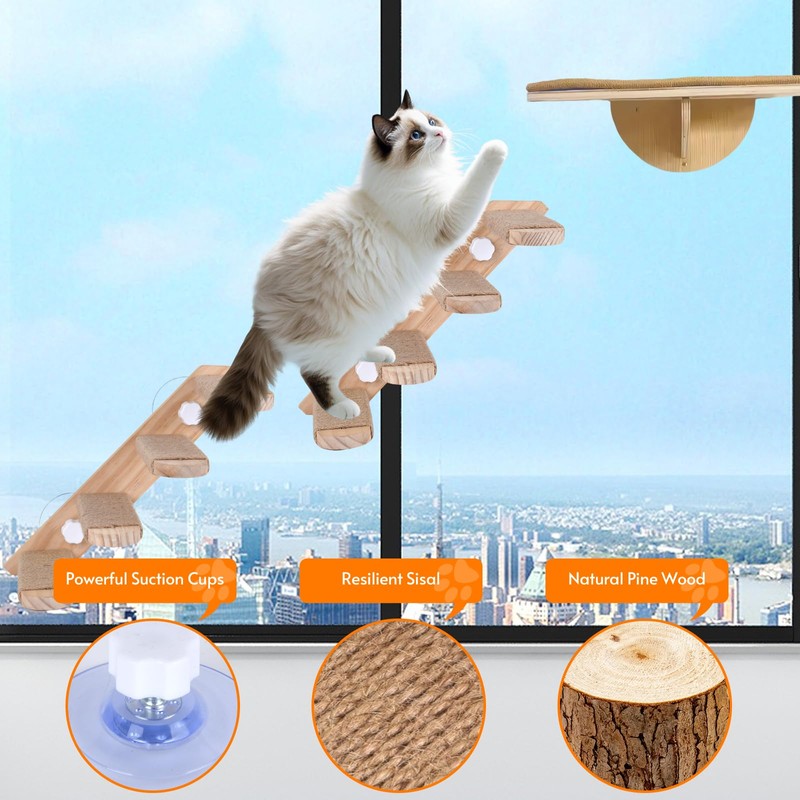 • Stability: Each Cat Window Ladder is equipped with ropes that wrap around the ladder, and the cat's feet have good suction when placed on it. Suction cup design requires cleaning the glass surface thoroughly and combining it with a screw buckle to adhere to the window, providing exceptional stability