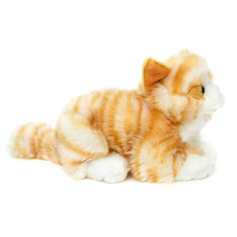 Cat with voice (brown-white), lying down, 20 cm (length), plush kitten, plush toy, cuddly toy