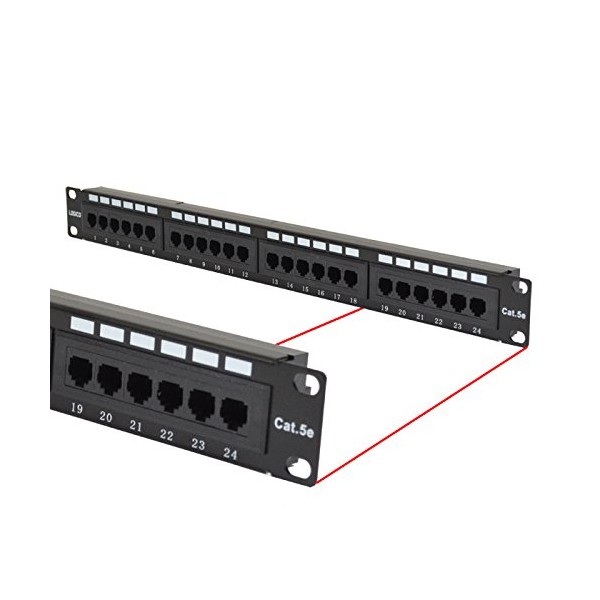 Cat5e 24 Port Patch Panel Ethernet Network LAN RJ45 UTP 1U Rack Mount 110