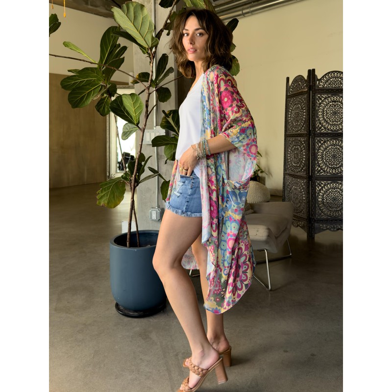 CATCHY & CRAFTY Kimono Swimsuit Coverup for Women Floral Boho Print Resort Wear Summer Beach Viscose (Pink Sky Paisley)