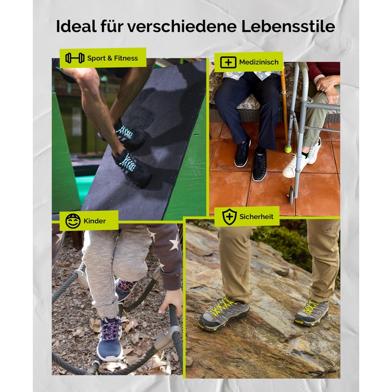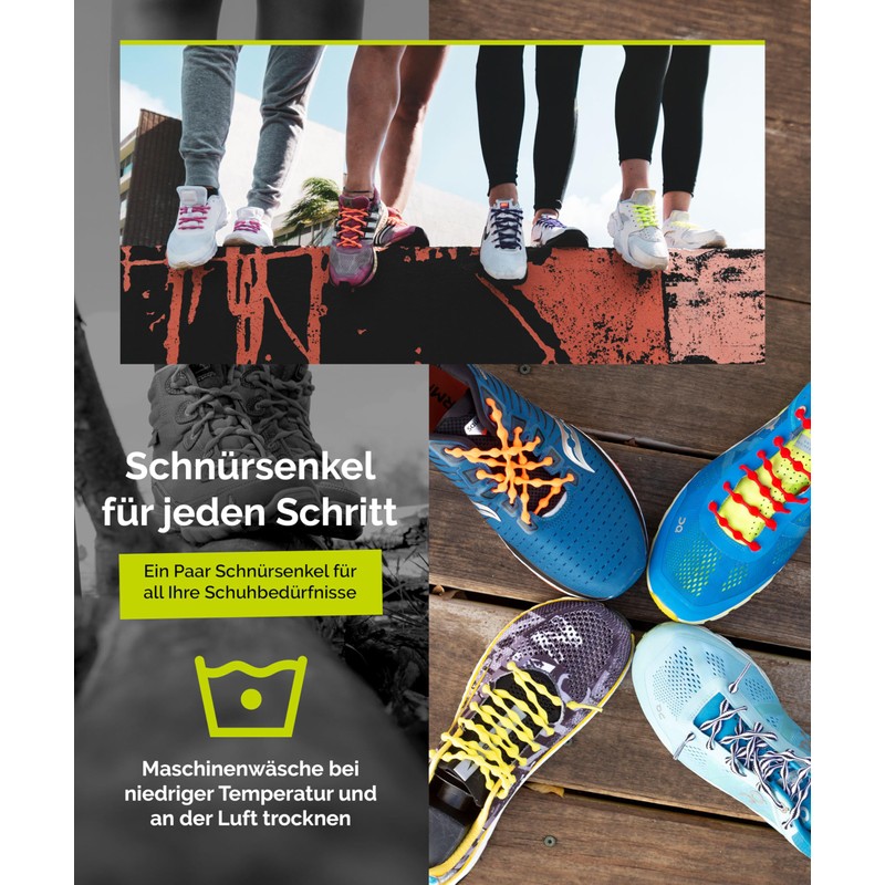 - ELASTIC COMFORT: Our elastic laces improve the blood circulation of your feet as they swell naturally all day long. Knots made from traditional laces create suffocation points and tie your feet.