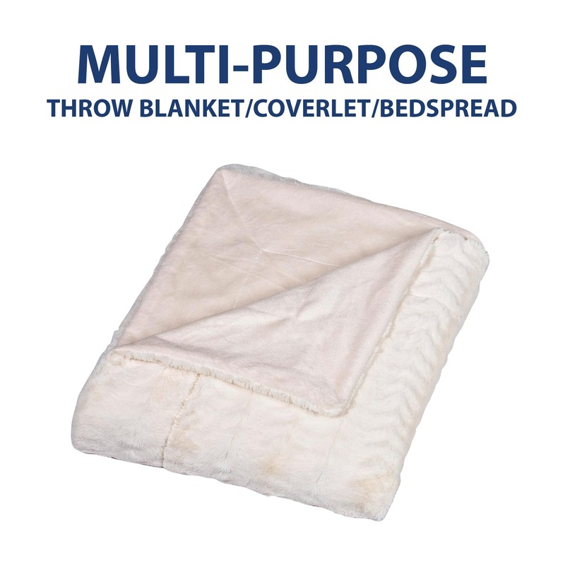 Cathay Home Luxe Faux Fur Mink Ultra-Soft Embossed Bedding Blanket -King, Cream, 1-Piece Throw/Blanket/Coverlet/Bedspread