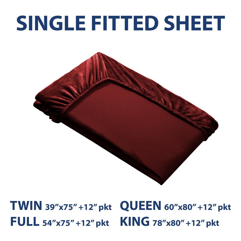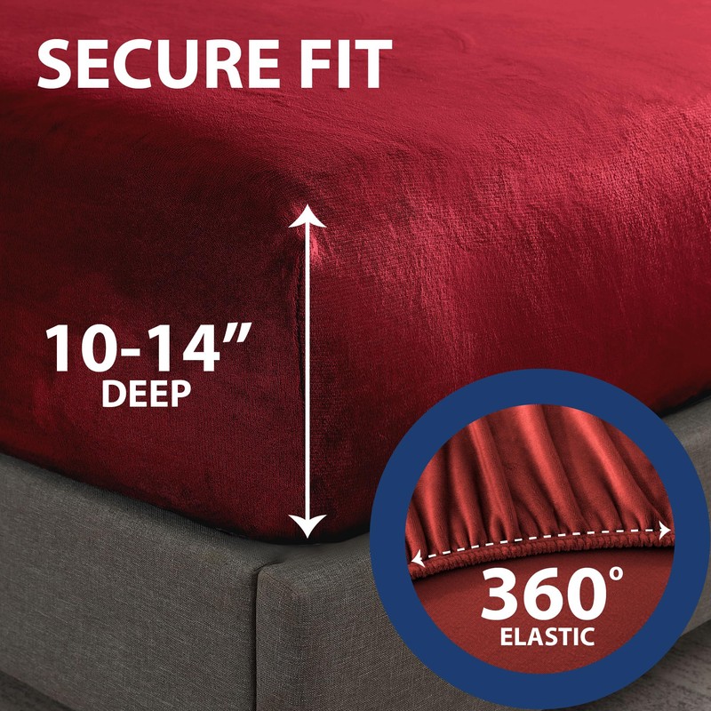 Cathay Home Queen Flannel-Plush Fitted Sheet - Ultra Soft & Thick Plush, No-Pilling - All Season Cozy Warmth - 12" Deep Pocket Fitted Sheet Only (Queen, Burgundy)