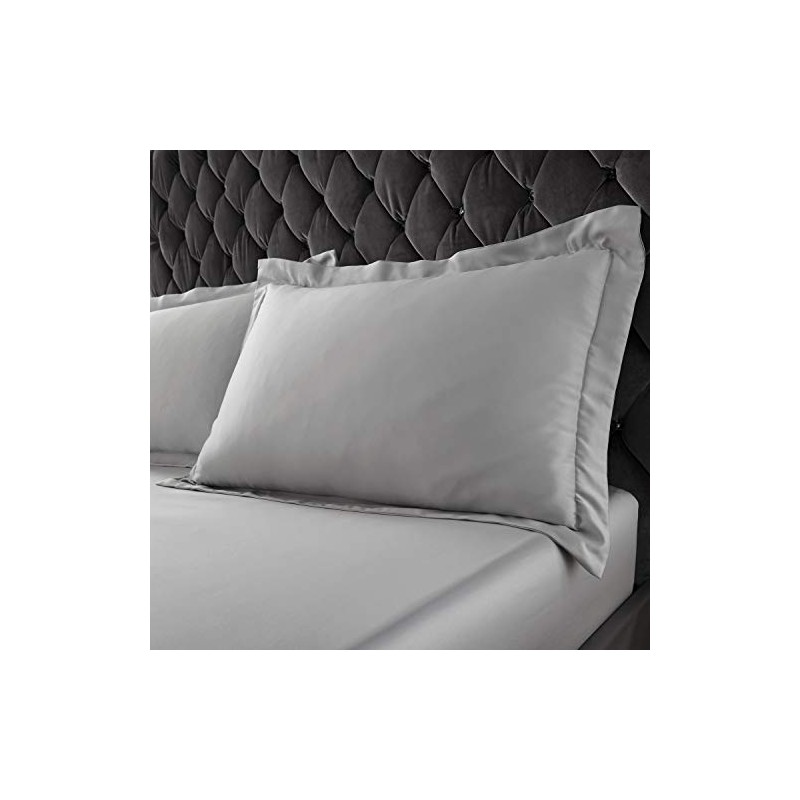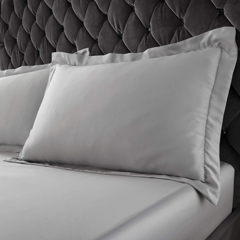Catherine Lansfield Silky Soft Satin Oxford Pillowcase Pair Silver